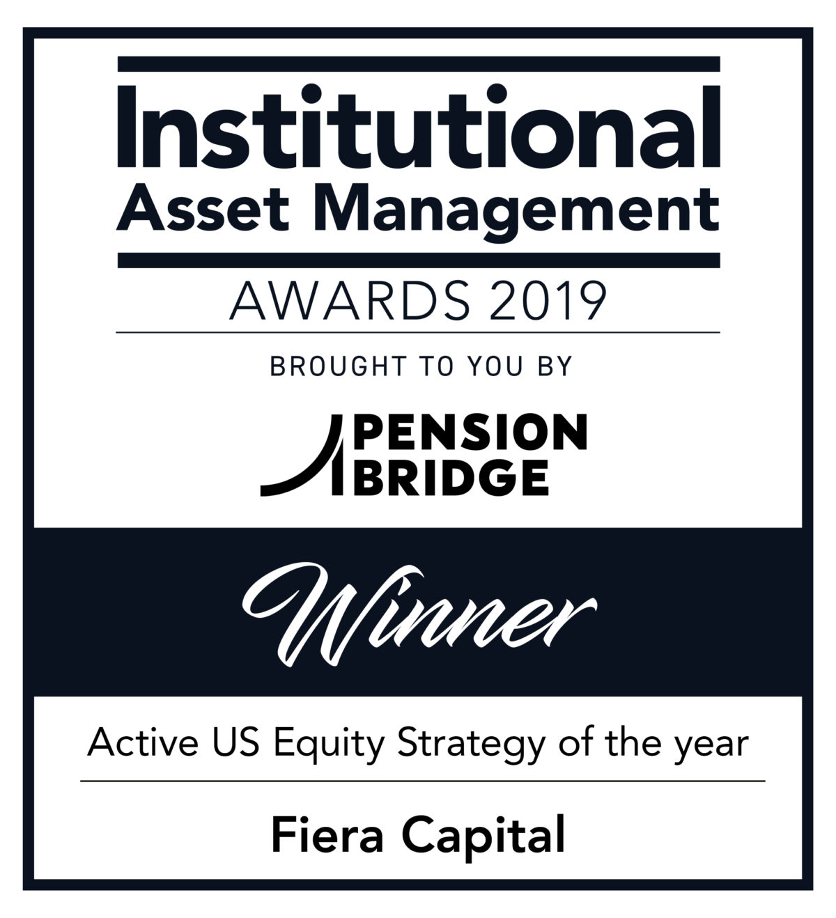Fiera Capital’s Fiera Capital US Equity Strategy named Active US Equity Strategy of the year at the 2019 Institutional Asset Management Awards.