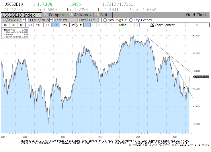 Figure 5: The TIPS market may be confirming this party may last. Inflation breakevens are rising again. We will track this development as there are resistance levels to monitor.