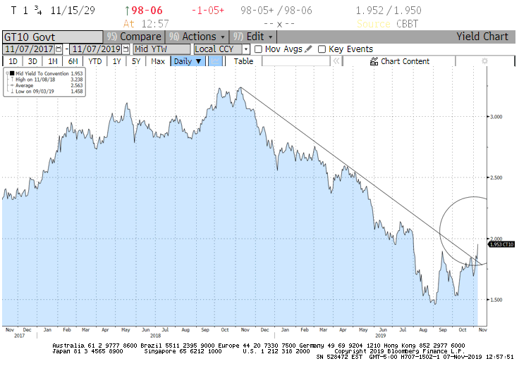 Most days are just pages on the calendar – today matters more than others for investors. We believe the bond market is sending equity investors a very powerful signal: Today’s price action is an interest rate explanation point that the global economy is recovering, that the trade talk resolution between the US & China is real, and as a result growth and inflation spirits are reviving swiftly. Bond market traders are sending a confirming signal that the stock market surge to new highs is valid. The charts below show the green light signals for equity investors shooting up from the bond market: