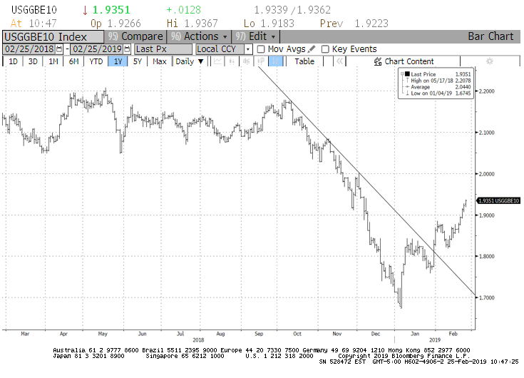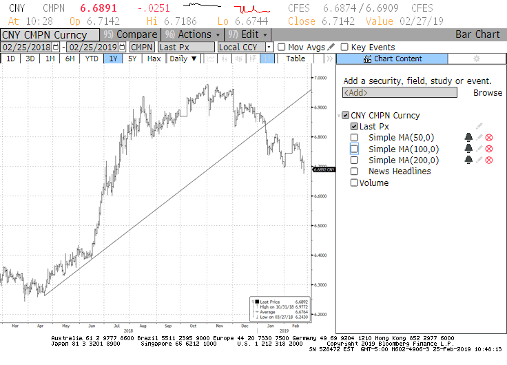 2 – The Chinese Yuan (CNY) bottomed at the end of 2018 and has strengthened steadily since the start of the year. In fact, the weakening trend in CNY was also decisively broken in February. Stability in China’s currency is bullish for EM as it reduces the risk of competitive devaluations in Asia and a broader currency war.